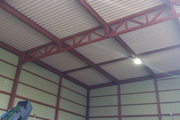 岡山県岡山市の北区にて、排出された産業廃棄物を再利用してリサイクルする処理場の屋根に高天井用照明の工事をおこないました。